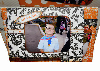 Using the kit and the clipboard that came with the kit, I created this Frame of my youngest grandson. We took him to his first pumpkin patch and with our big family he thought he had a fan club so he waved to everyone! I also used inks on all the edges and my die-cut machine to enhance the kit.